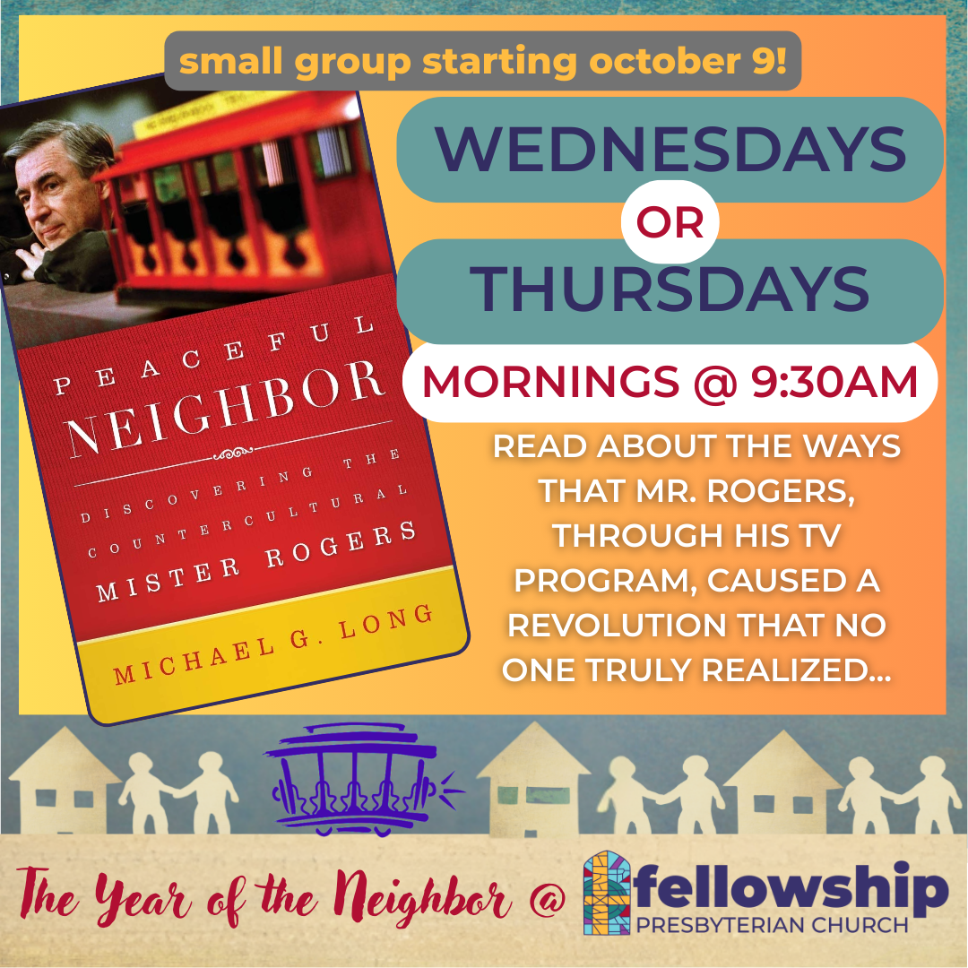 Using the book Peaceful Neighbor: Discovering the Countercultural Mister Rogers by Tom Long as a guide, the group will discuss the ways that a beloved television host was, through his show, leading a quiet revolution of peace and love.