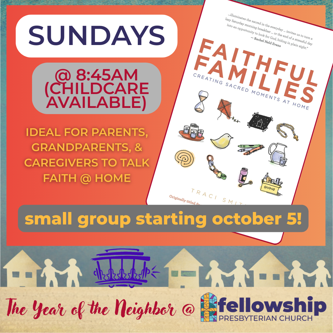Using the book Faithful Families by Traci Smith as a guide, the group will discuss strategies for helping families “do faith” at home. Childcare is available, starting at 8:30am.