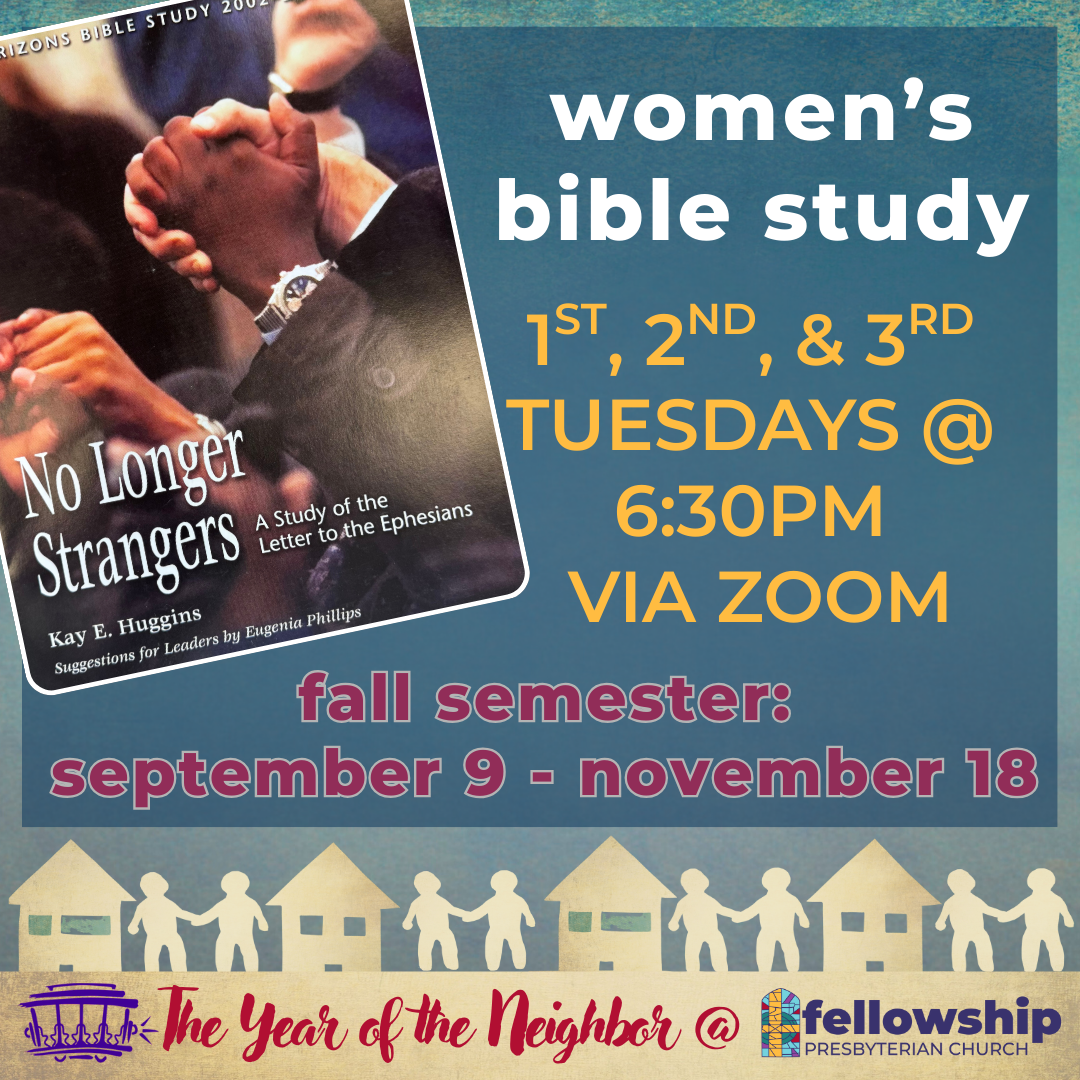 The fall semester’s women’s bible study focuses on the Book of Ephesians for a peer-led group discussion via Zoom.